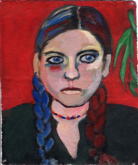 Self portrait in blue and red